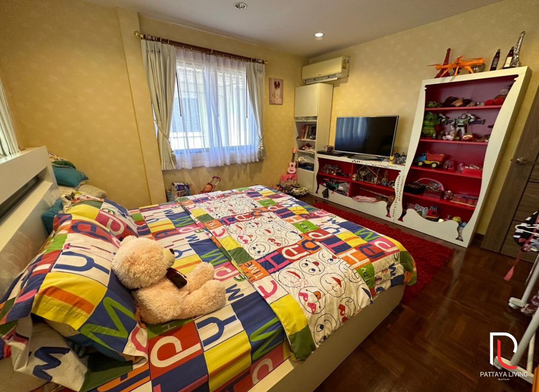 House for sale in Pattaya (Jomtien) is a fully furnished 3-bedroom, 3-bathroom house with a private pool. It's 162 Sq.wah of land size and is in a company name. The transfer is 50/50 between the seller and the buyer."