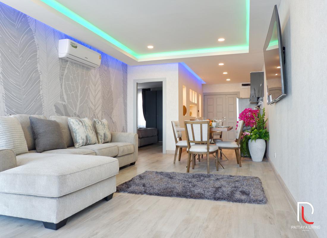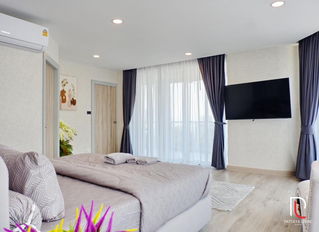 Condo for sale in Pattaya (Pratumnak) is a fully furnished 2 bedroom 2 bathroom living size 123 sqm. with a sea view on 7 floors, and it is in a foreign name. The transfer is 50/50 between the seller and the buyer."