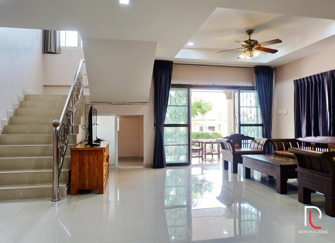 House for rent in Pattaya (East Pattaya) is a fully furnished 3-bedroom, 3-bathroom house with a communal pool. It's 80 Sq.wah of land size