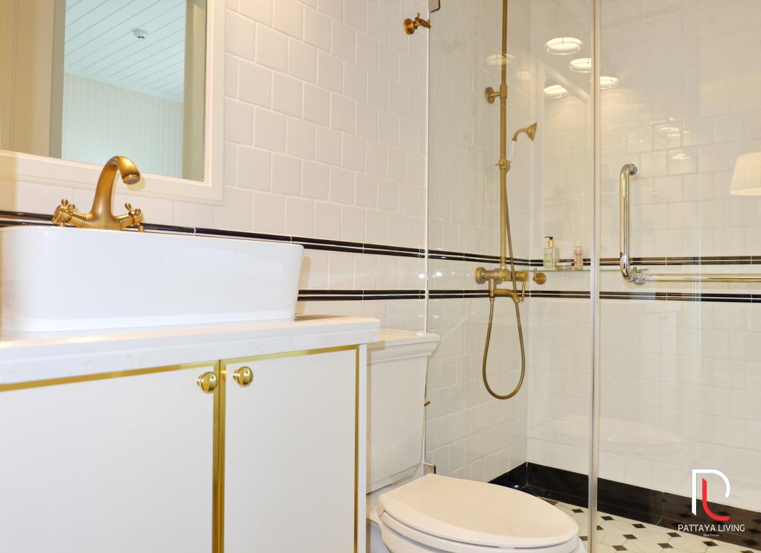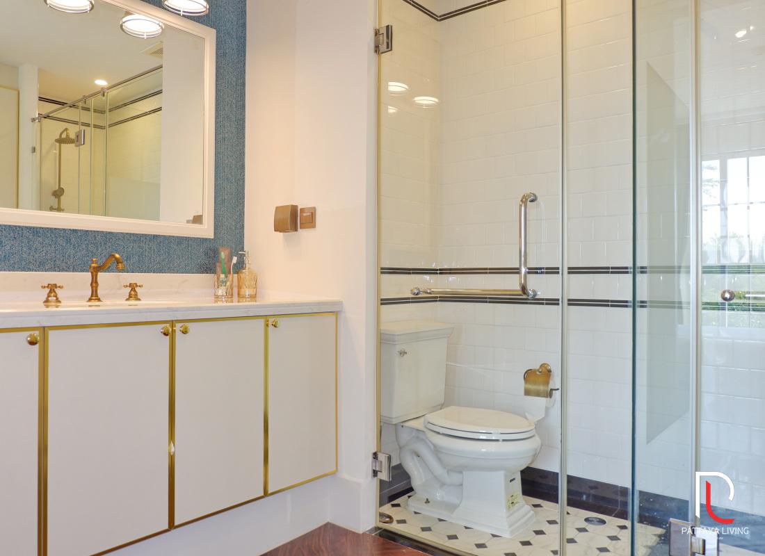 Condo for sale in Pattaya (Na Jomtien) is a fully furnished 3 bedroom 3 bathroom living size 101.6 sqm. with a sea view on 2 floors of building A, and it is in a Thai name (FQ available). The transfer is 50/50 between the seller and the buyer."