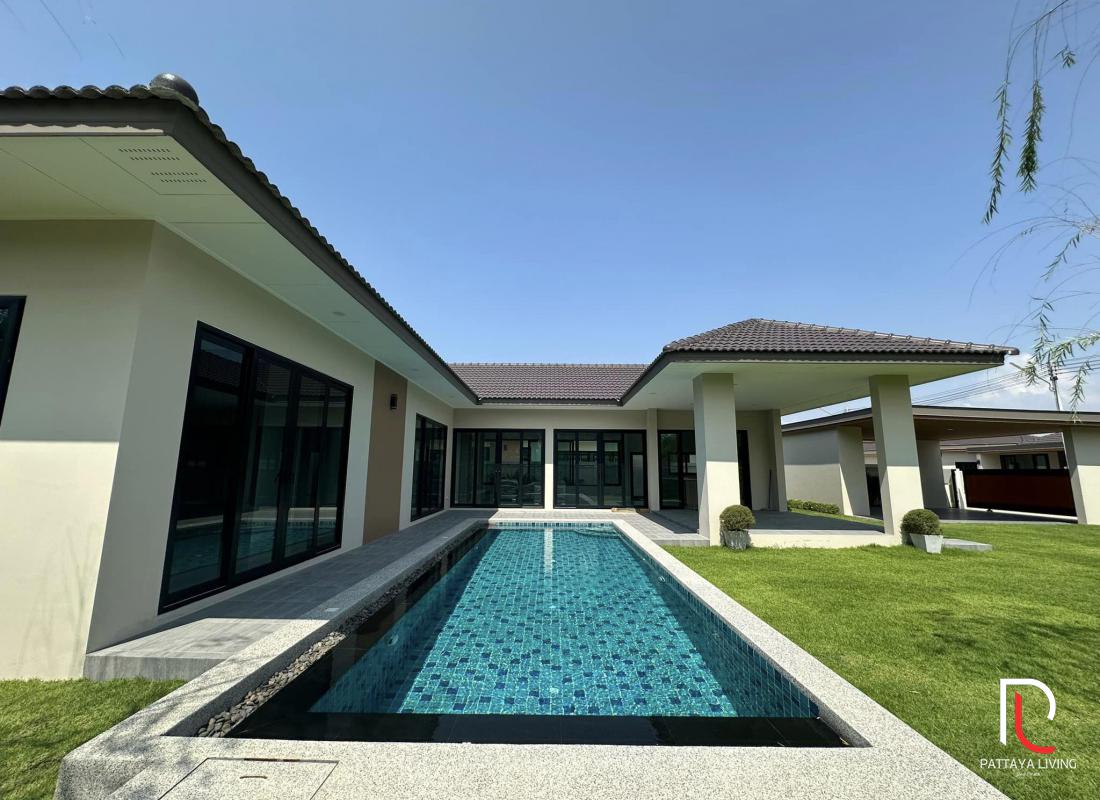 House for sale in Pattaya (Huay Yai) is a built-it 3-bedroom, 4-bathroom house with a private pool. It's 108 Sq.wah of land size and is in Thai name. The transfer is 50/50 between the seller and the buyer."