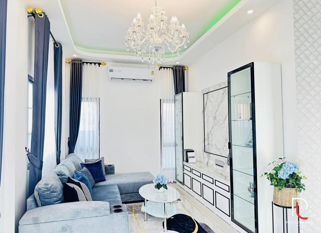 House for sale in Pattaya (East Pattaya) is a fully furnished 3-bedroom, 3-bathroom house with a private pool. It's 70 Sq.wah of land size and is in Thai name. The transfer is 50/50 between the seller and the buyer."