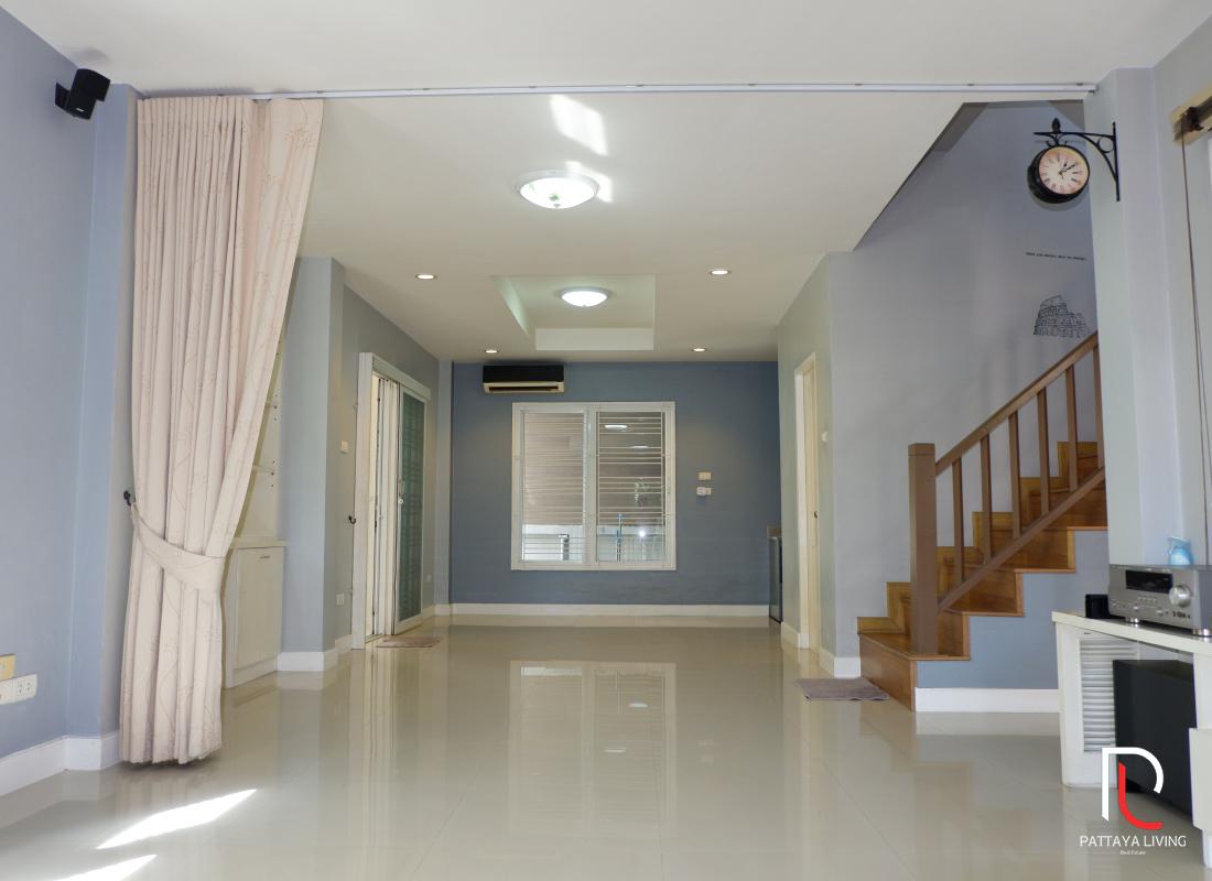House for sale in Sriracha is a fully furnished 4-bedroom, 3-bathroom house with a communal pool. It's 72 Sq.wah of land size and is in a Thai name. The transfer is 50/50 between the seller and the buyer."